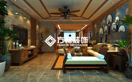 沈陽御景新世界199平戶型東南亞風格裝修效果圖,沈陽方林裝飾出品。