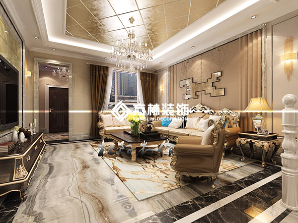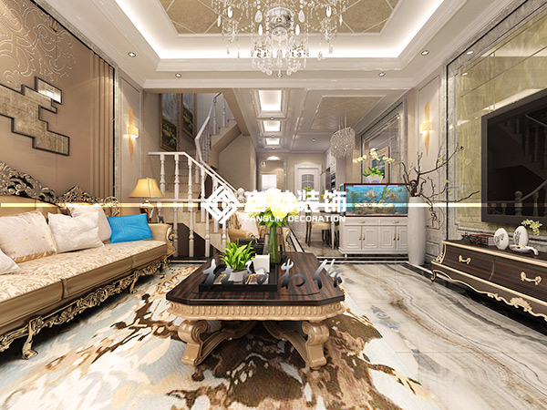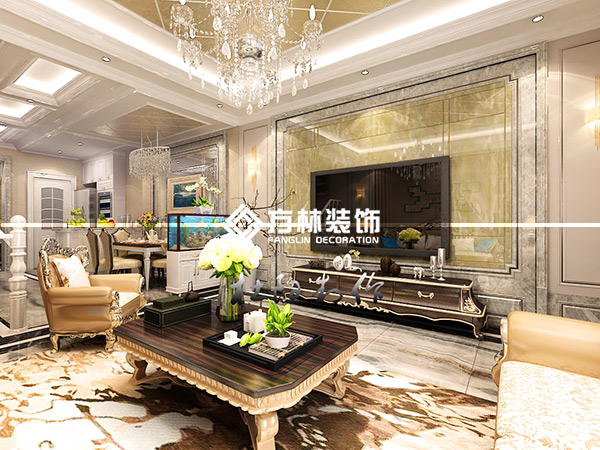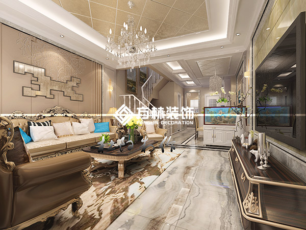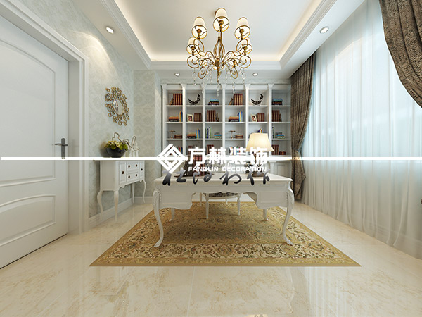 旭輝御府古典歐式340別墅裝修案例,帶書房和影音室,方林裝飾出品。