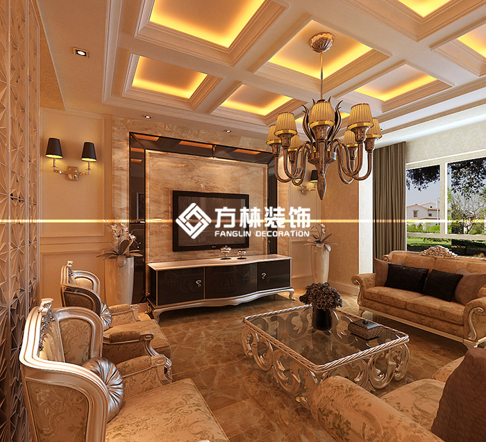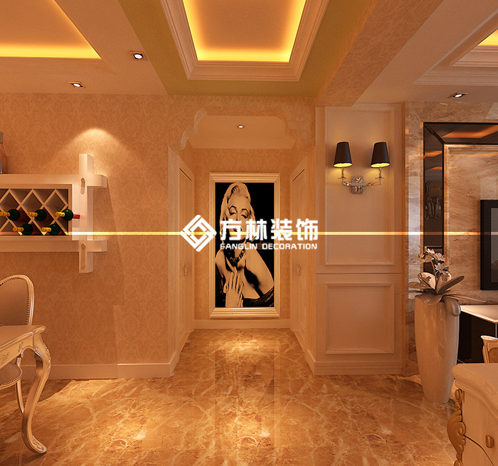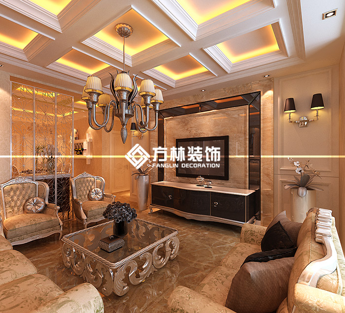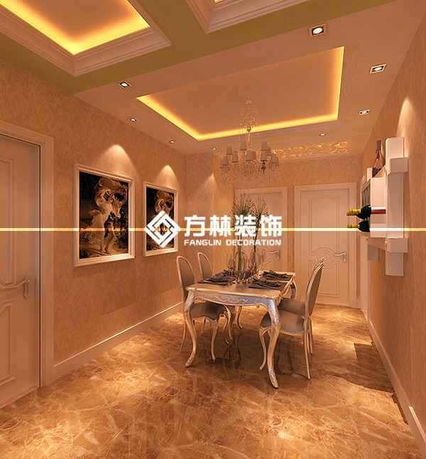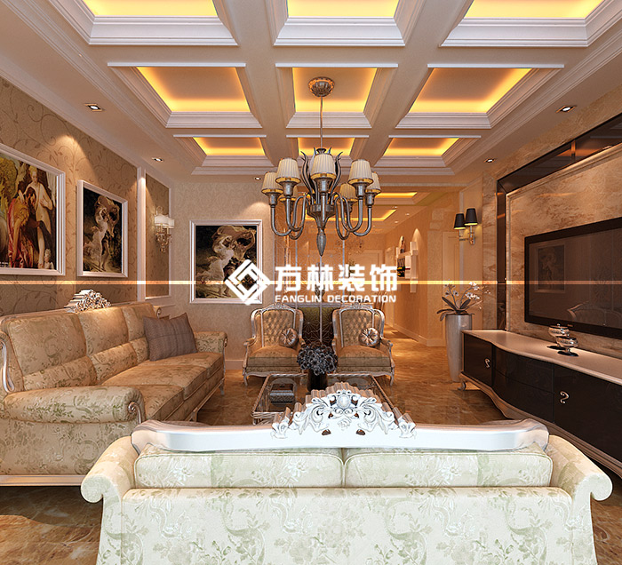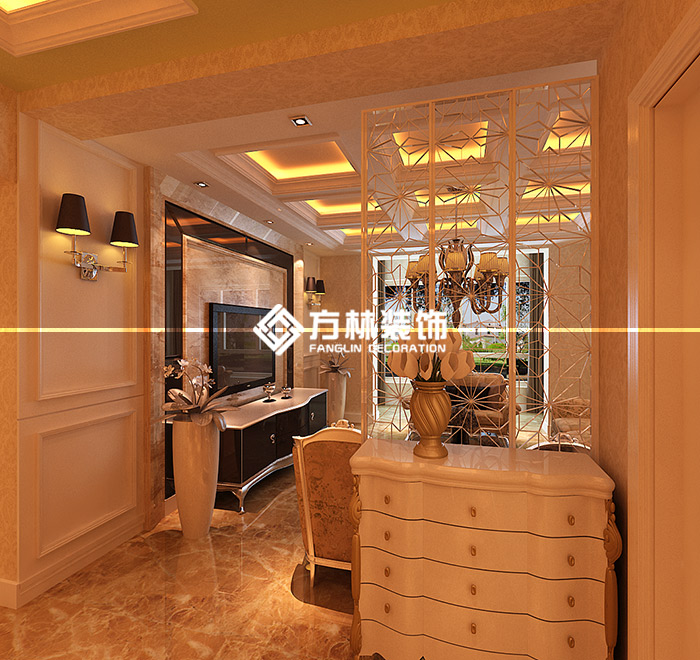 中鐵丁香水岸98平簡歐三居室裝修效果圖,方林裝飾出品。
