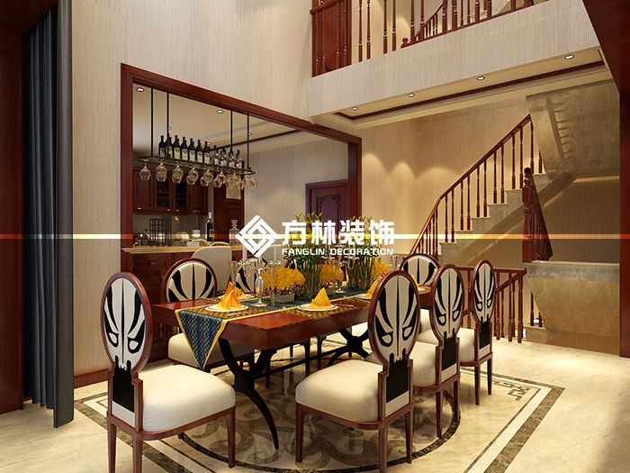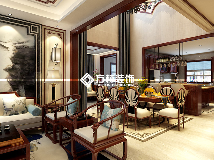 孔雀城別墅420簡(jiǎn)約中式,1樓帶地下室戶型,方林裝飾出品。
