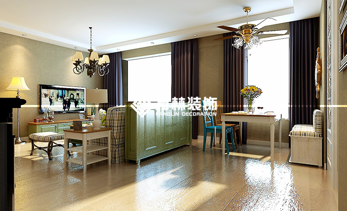 霍爾寓所田園風(fēng)格127平兩居室,方林出品。