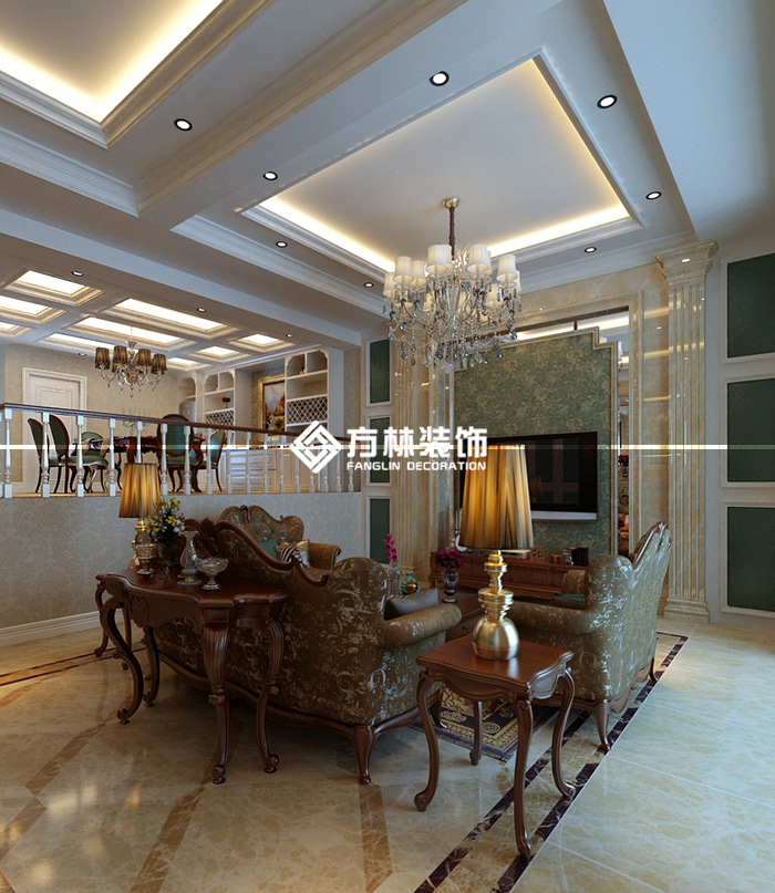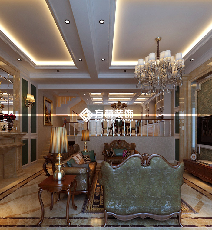 奧林匹克花園280平新中式混搭裝修效果圖,方林出品。