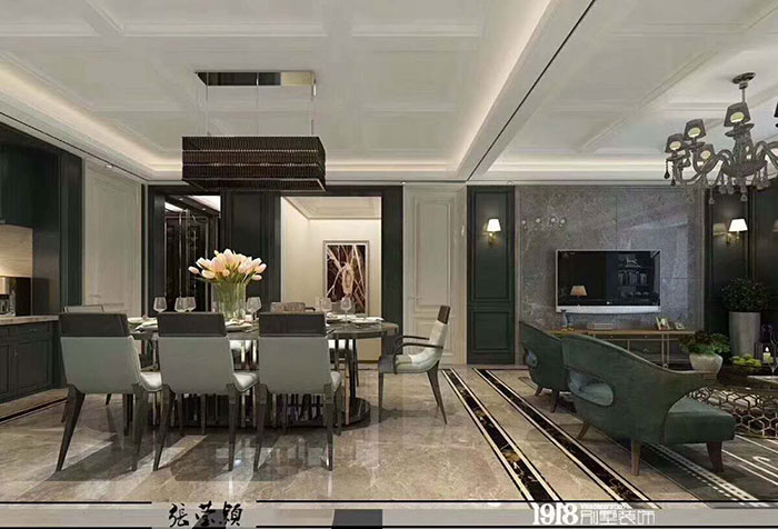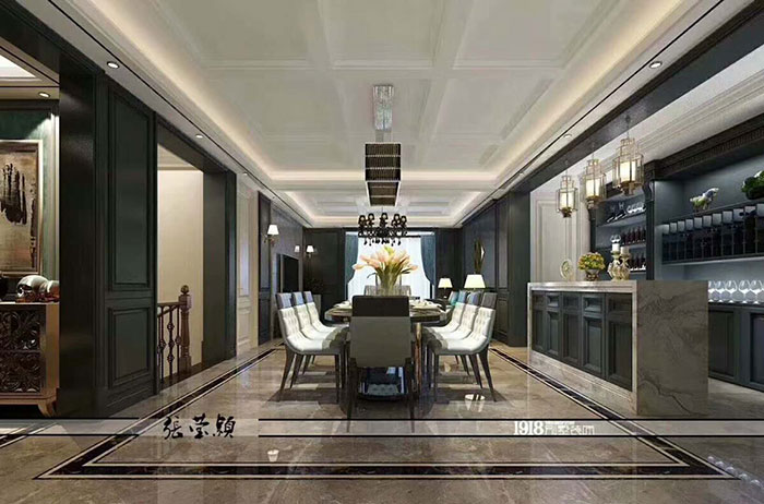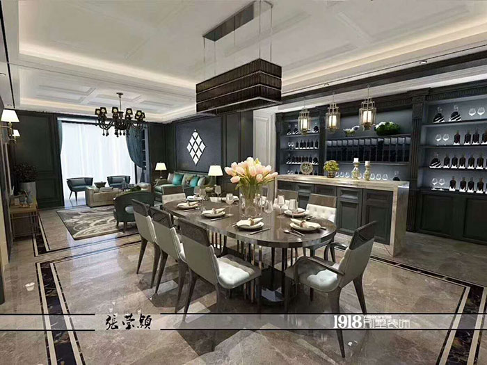 金地名悅450平輕奢美式裝修效果圖,設計講求的自由不羈和實用一樣,空間的格局與功能變化相融合,軟裝配飾巧妙運用于細節(jié)多變,為主人打造了一個沉靜優(yōu)雅的美好輕奢空間。