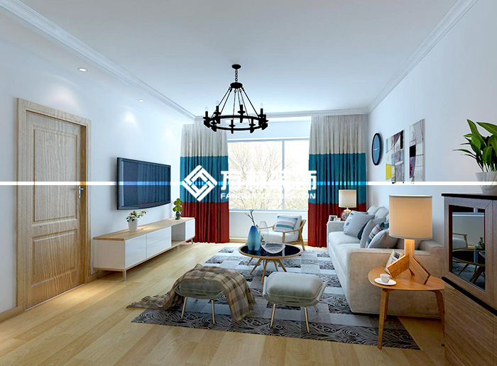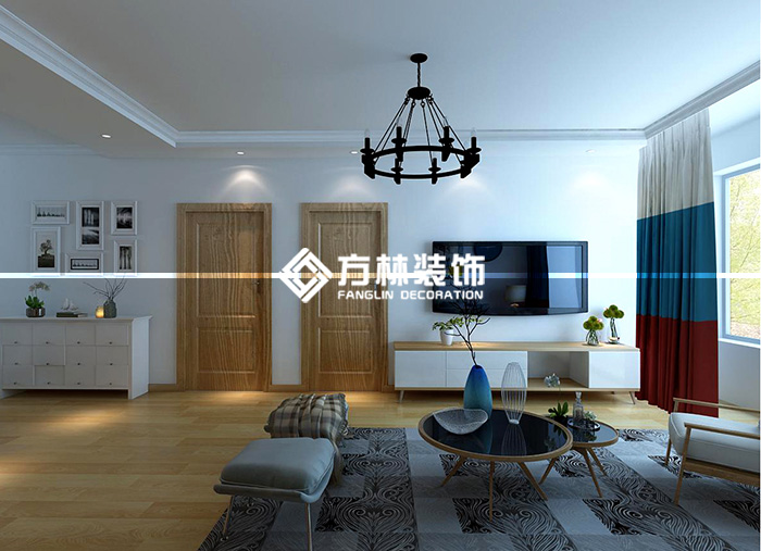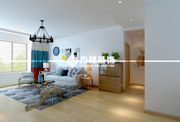 陽光100鳳凰灣124北歐裝修效果圖,主要展示客廳。