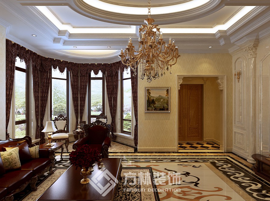 案例:綠地劍橋186平歐式風(fēng)格裝修效果圖