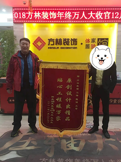 (陽光100鳳凰灣)業(yè)主親自到公司送來錦旗,感謝所有方林工作人員的工作認真、負責(zé),工藝技能的精湛,他們?nèi)胰硕己軡M意 讓我們共同努力,用服務(wù)好每一位客戶!