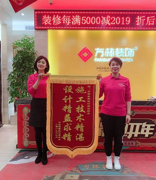 方林裝飾就是好 表?yè)P(yáng)感謝少不了 大家一起來(lái)努力 創(chuàng)造輝煌好成績(jī) 業(yè)主親自到公司送來(lái)錦旗,感謝所有方林工作人員的工作認(rèn)真、負(fù)責(zé),工藝技能的精湛,他們?nèi)胰硕己軡M(mǎn)意 讓我們共同努力,用服務(wù)好每一位客戶(hù)!