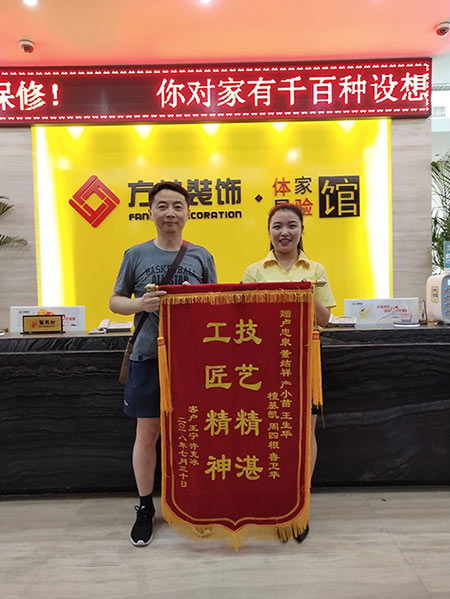 方林裝飾就是好 表揚(yáng)感謝少不了 大家一起來努力 創(chuàng)造輝煌好成績 (中海寰宇天下)業(yè)主親自到公司送來錦旗,感謝所有方林工作人員的工作認(rèn)真、負(fù)責(zé),工藝技能的精湛,他們?nèi)胰硕己軡M意 讓我們共同努力,用服務(wù)好每一位客戶!