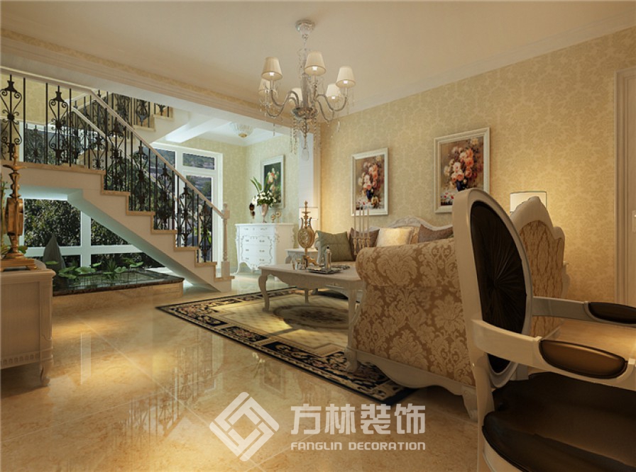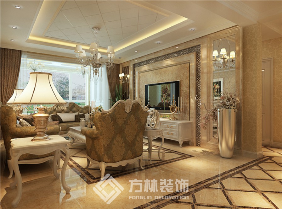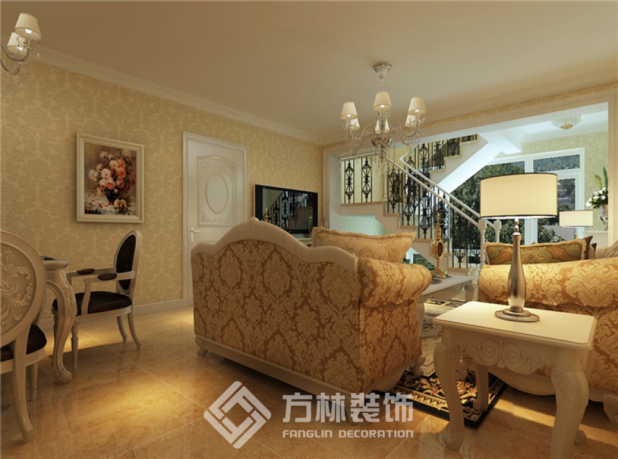 設(shè)計(jì)理念:本案設(shè)計(jì)為歐式風(fēng)格,采用的大量理石、壁紙充分體現(xiàn)了歐式的富麗堂皇。