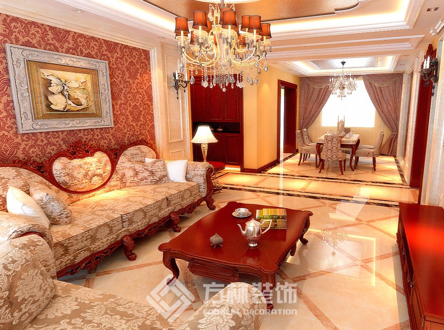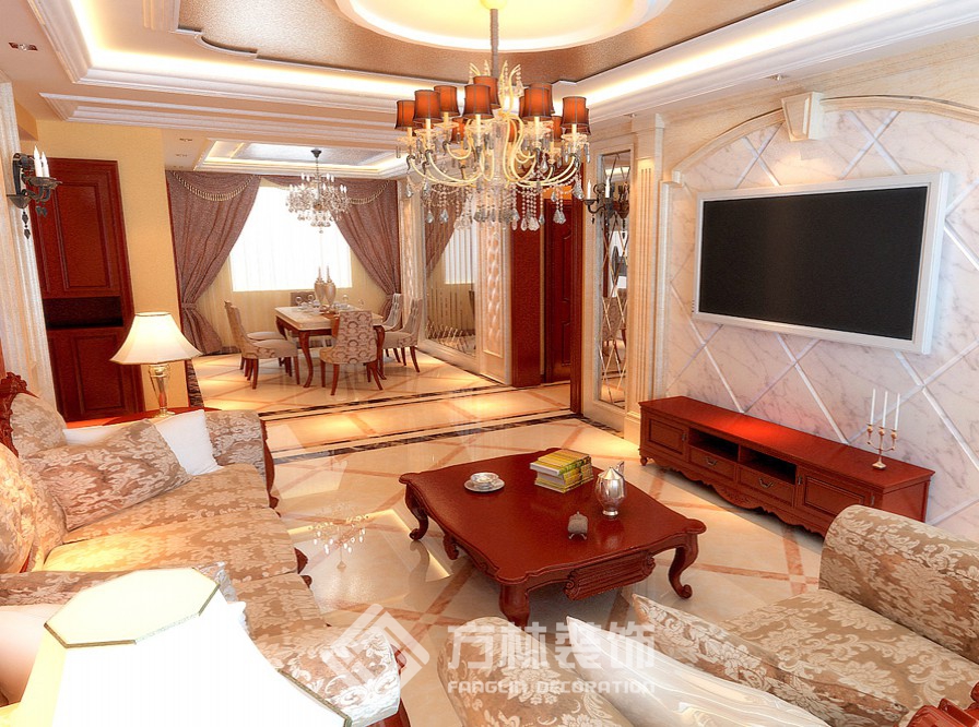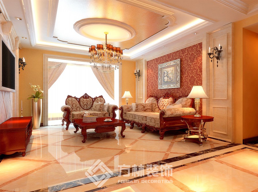 設計理念:極致奢華的歐式風格,大理石的背景墻,奢華的花紋壁紙,無處不顯示著歐式的奢華。