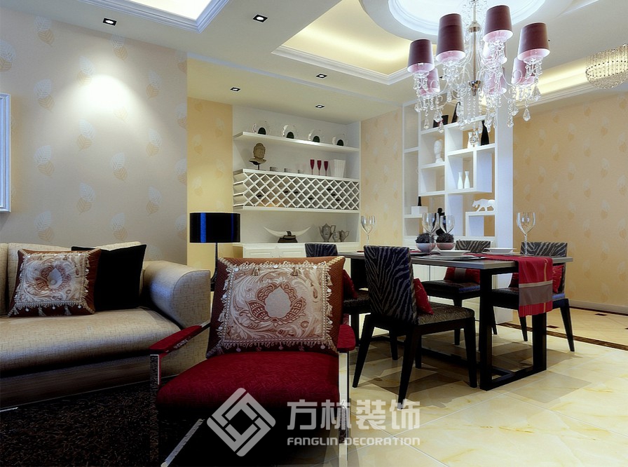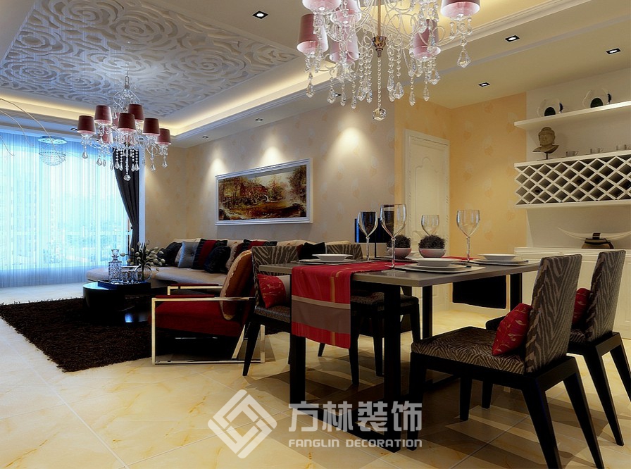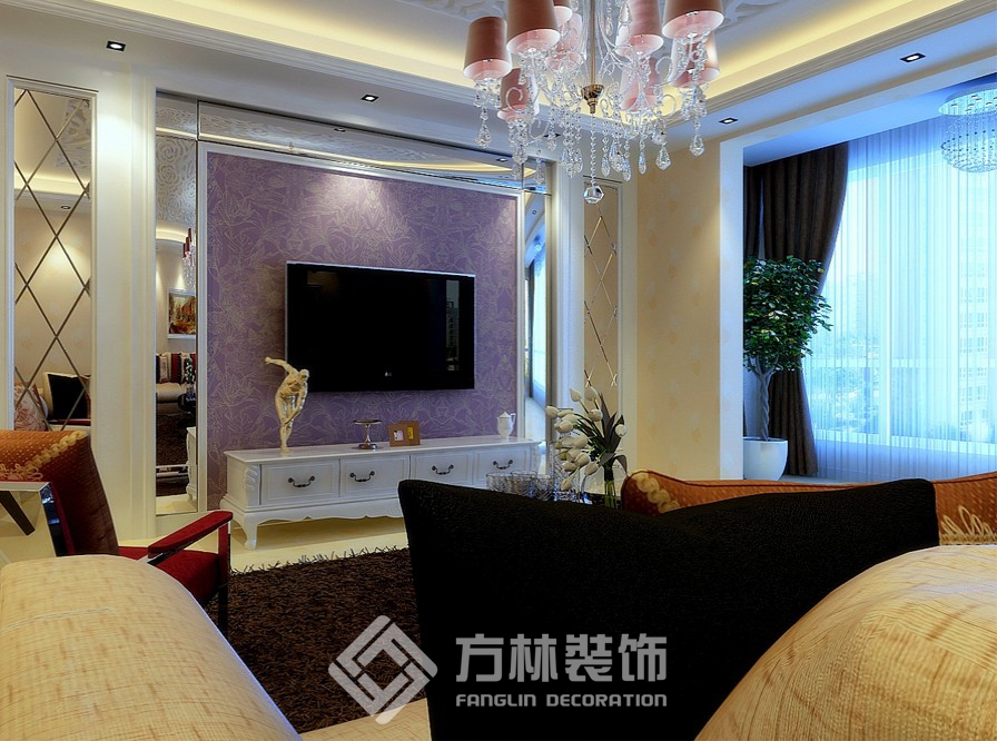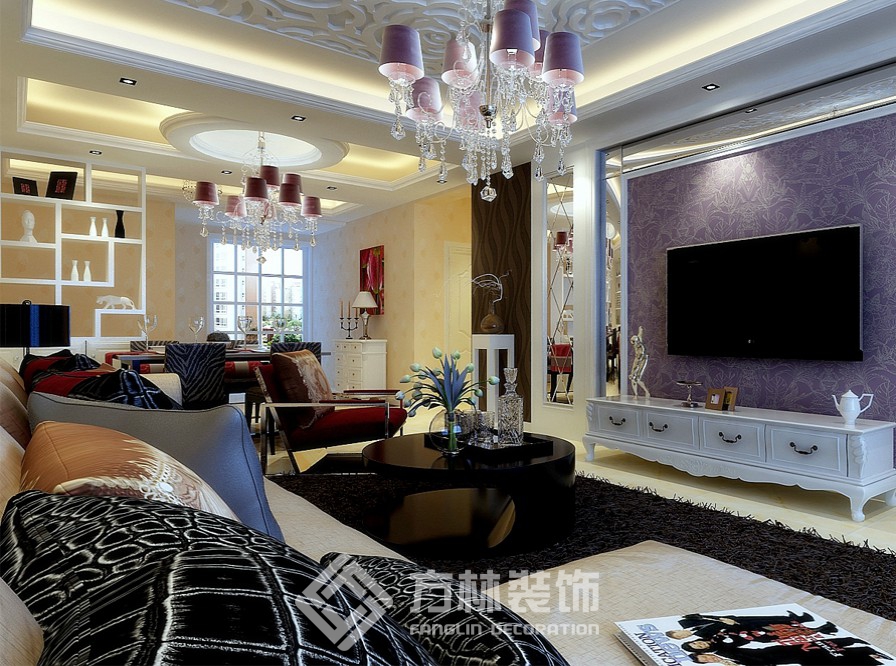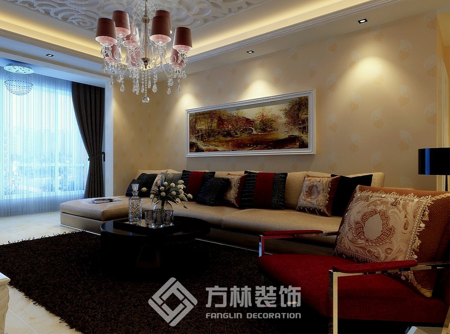 設計理念:跳躍的色彩,歐式的線條,一切都是憑屋主的心情來!混搭的讓人心動! 這樣一個暖意融融的房子,進入其中,沒有負擔,隨心所欲!完全沒有了城市的壓抑與低迷。金色的壁紙搭上家具的質感,讓偌大的房子不空曠,顯得亮麗及充盈感十足!