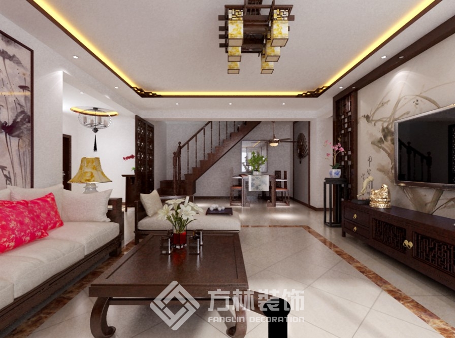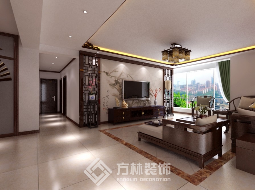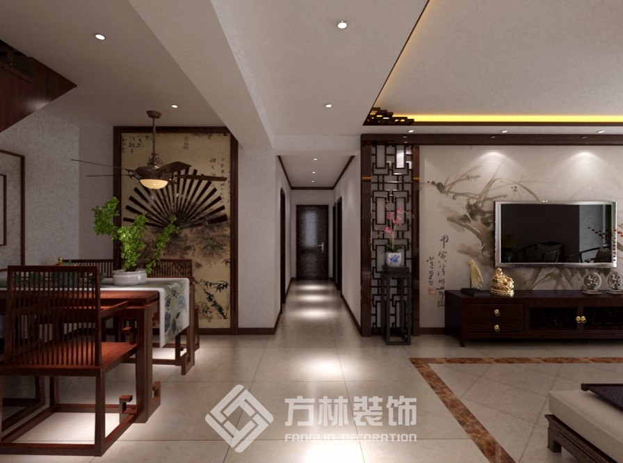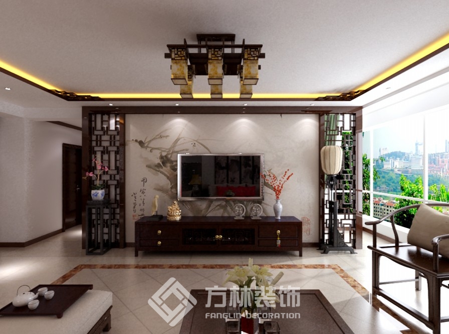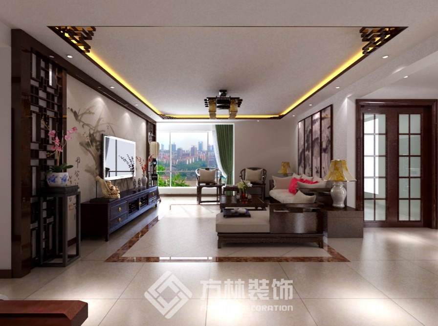 案例:保利達(dá)江灣城130平新中式效果圖