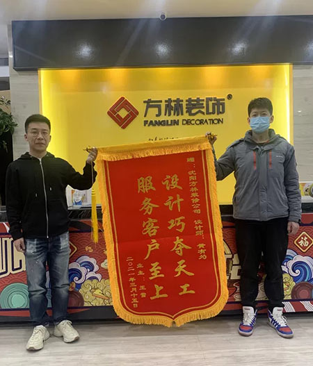 方林裝飾就是好 表?yè)P(yáng)感謝少不了 大家一起來(lái)努力 創(chuàng)造輝煌好成績(jī) 保利茉莉公館業(yè)主親自到公司送來(lái)錦旗,感謝所有方林工作人員的工作認(rèn)真、負(fù)責(zé),工藝技能的精湛,讓他們?nèi)胰硕己軡M意! 讓我們共同努力,用心服務(wù)好每一位客戶(hù)!